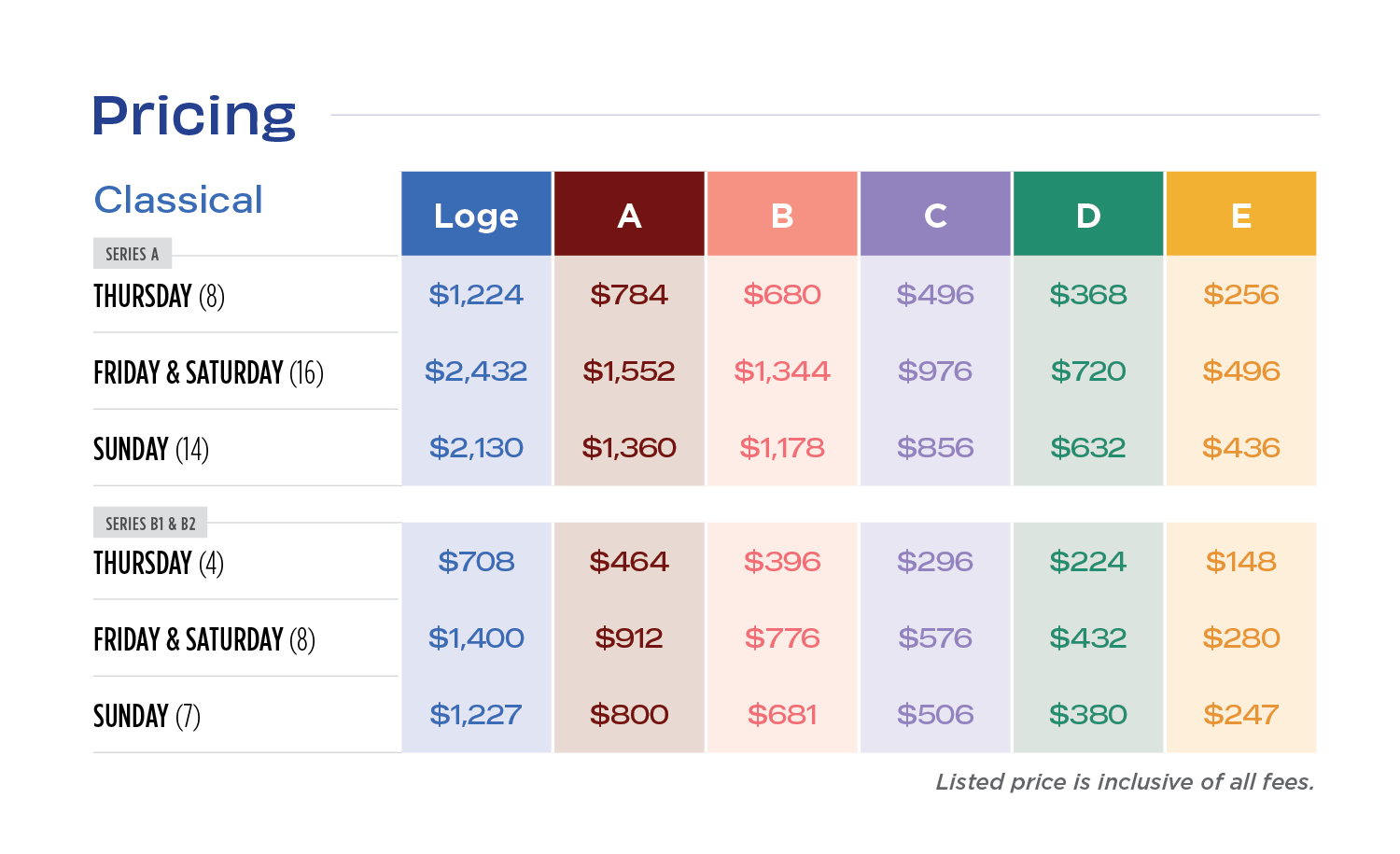 - Preferred seats for each concert