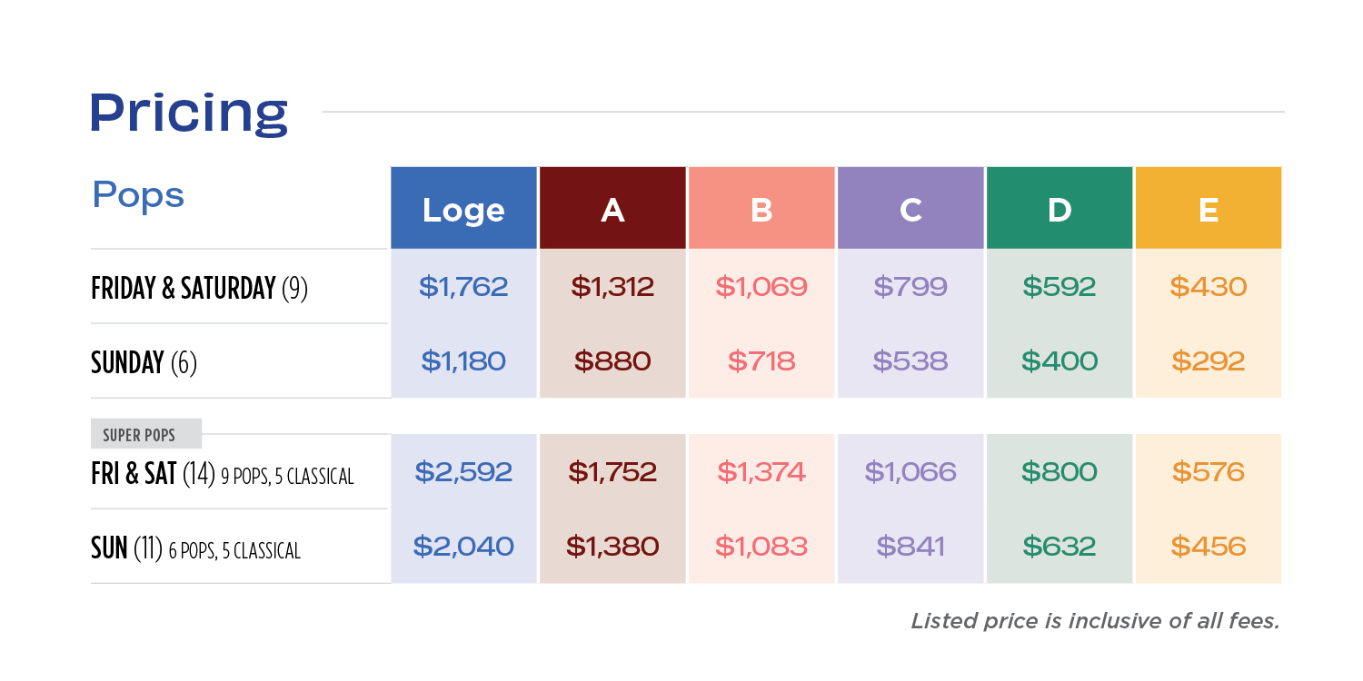 For the utmost flexibility, choose three or more concerts to create a lineup that suits your style, schedule and budget. Save up to 20% on tickets and enjoy exclusive Create Your Own Subscriber benefits.
